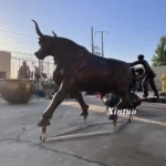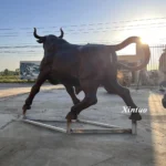 This bronze bull figurine, with its vivid design and exquisite craftsmanship, showcases the artist’s profound understanding and high-level summary of the ox. Bull strode forward with great strides, closed his mouth, and looked ahead, his entire posture appearing both steady and full of strength.