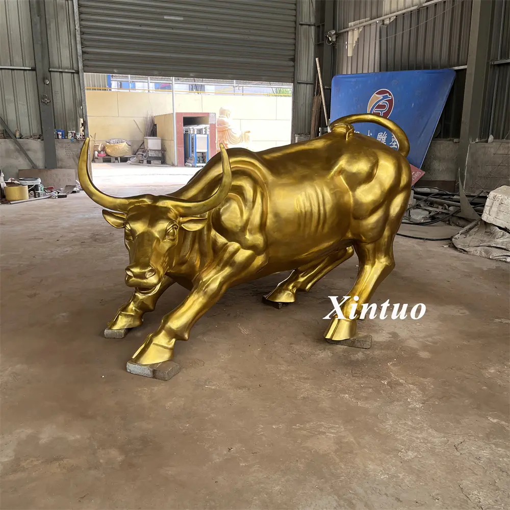 This stock market bull sculpture was designed and carved based on the Wall Street bull sculpture. The Wall Street Bull, is a famous bronze statue located on Wall Street in New York, USA. This bronze bull is not only an iconic symbol of Wall Street, but also represents the “bull market” of the stock market and the growth of wealth.