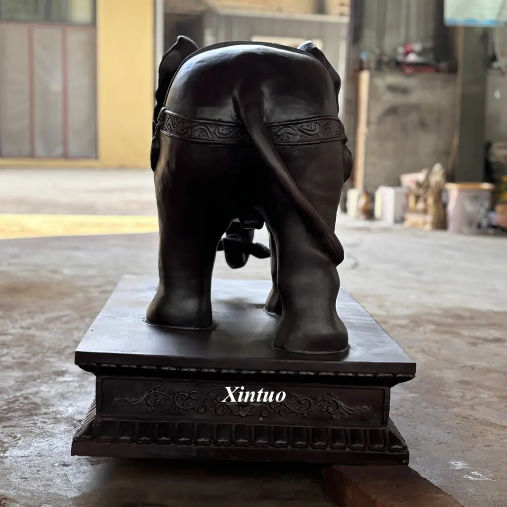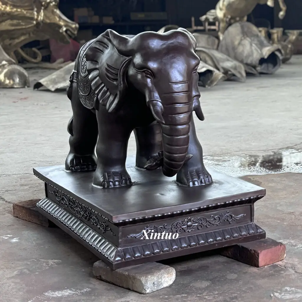 This is a thailand elephant statue. This elephant sculpture is made of bronze material, with a small and delicate shape, suitable for placement at store entrances, courtyard entrances, and other places. The posture of the little elephant standing is steady and elegant, with its four hooves firmly stepping on the base.